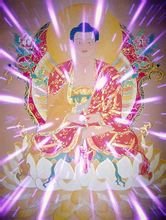 阿弥陀佛光明妙德亦凝聚在六字洪名中,净业行人执持佛号,即能感遇佛光,佛声不断光不断,佛我声光成一片。十方众生信愿持名,蒙光往生,因光成佛。净宗念佛法门之便捷,弥陀光明之妙用,可谓登峰造极。